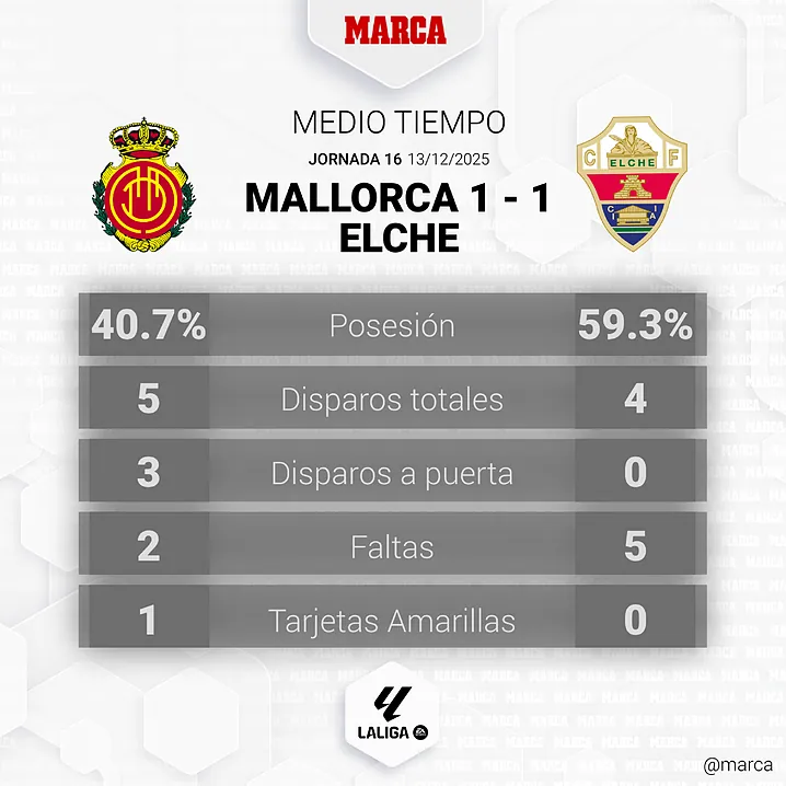 Якщо Мальорка свій момент втратила, то Ельче свій реалізував коштом захисника господарів поля. Маффео намагався вибити м’яч після прострілу, а замість цього спрямував м’яч у власні ворота. 1:1!