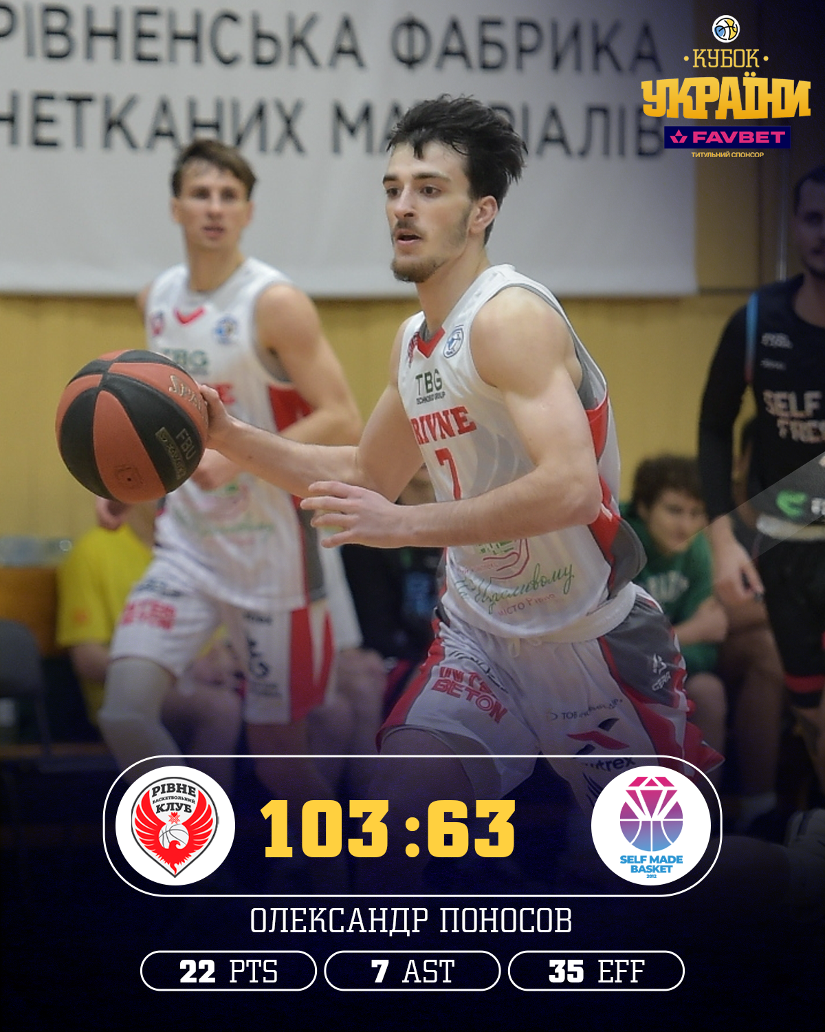 Найрезультативнішими в матчі стали Олександр Поносов у Рівного з 22 очками, 6 підбираннями, 7 передачами та 6 перехопленнями і Вадим Довідний у Селф Мейда з 24 очками (5/12 триочкові).