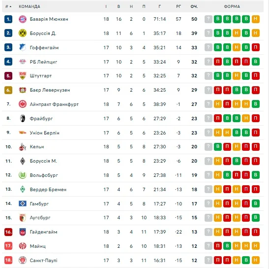 У суботу, 17 січня, Баварія розгромила РБ Лейпциг та впевнено лідирує у турнірній таблиці. Борусія Д перемогла Сант-Паулі, наразі «джмелі» перебувають на другій позиції чемпіонату.