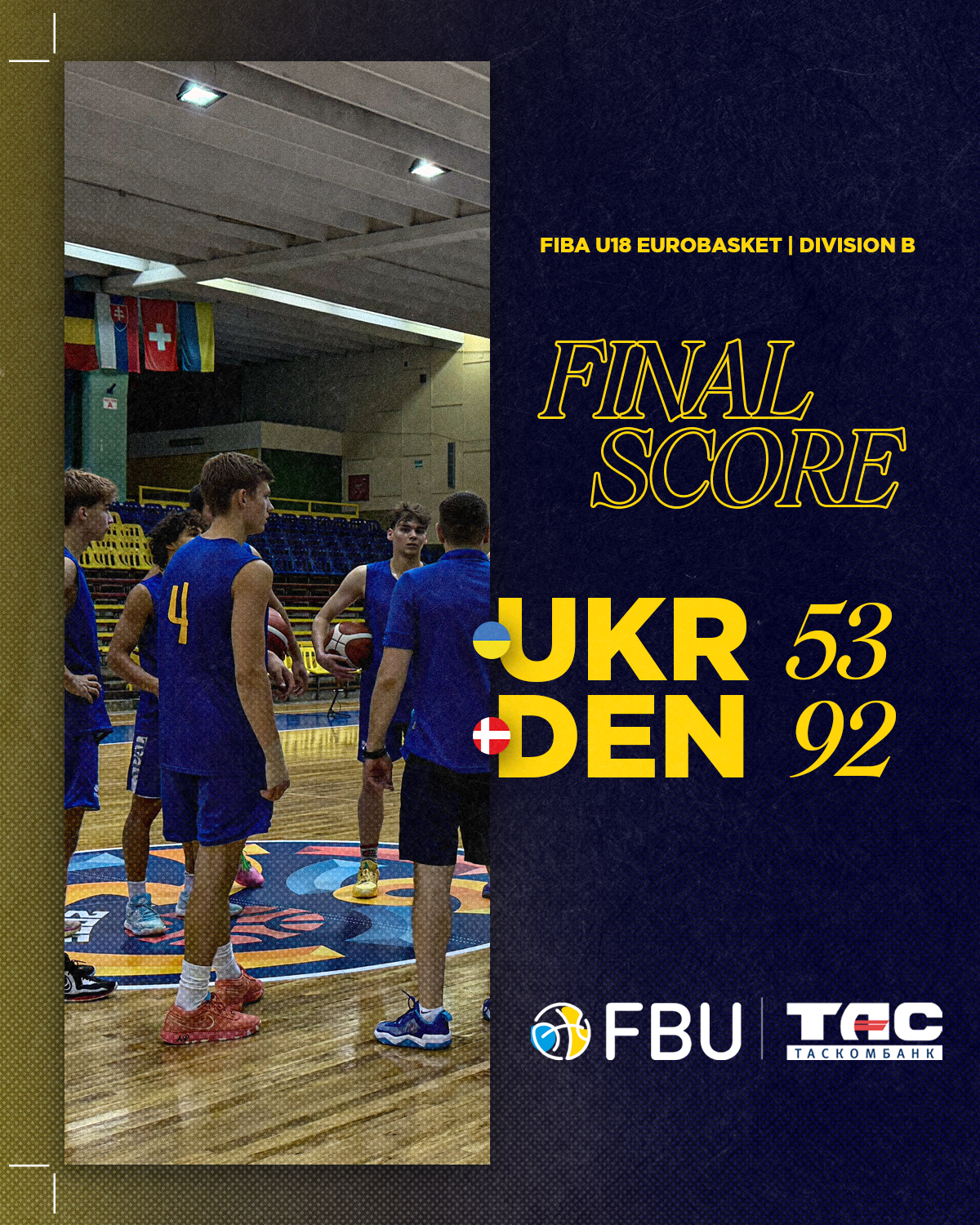 В стартовому для себе матчі українські юнаки поступились одному з фаворитів цьогорічного турніру Данії 53:92.