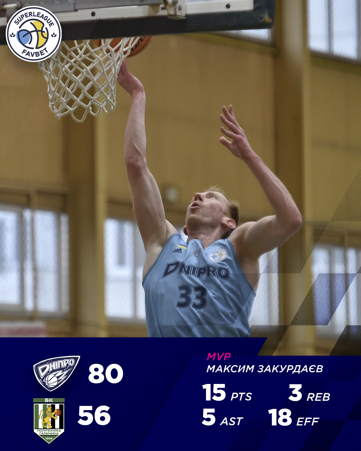 Дніпро здобув впевнену перемогу над Політехнікою-Галичиною з рахунком 80:56 в стартовому матчі другого ігрового дня рівненського баблу Суперліги Favbet.