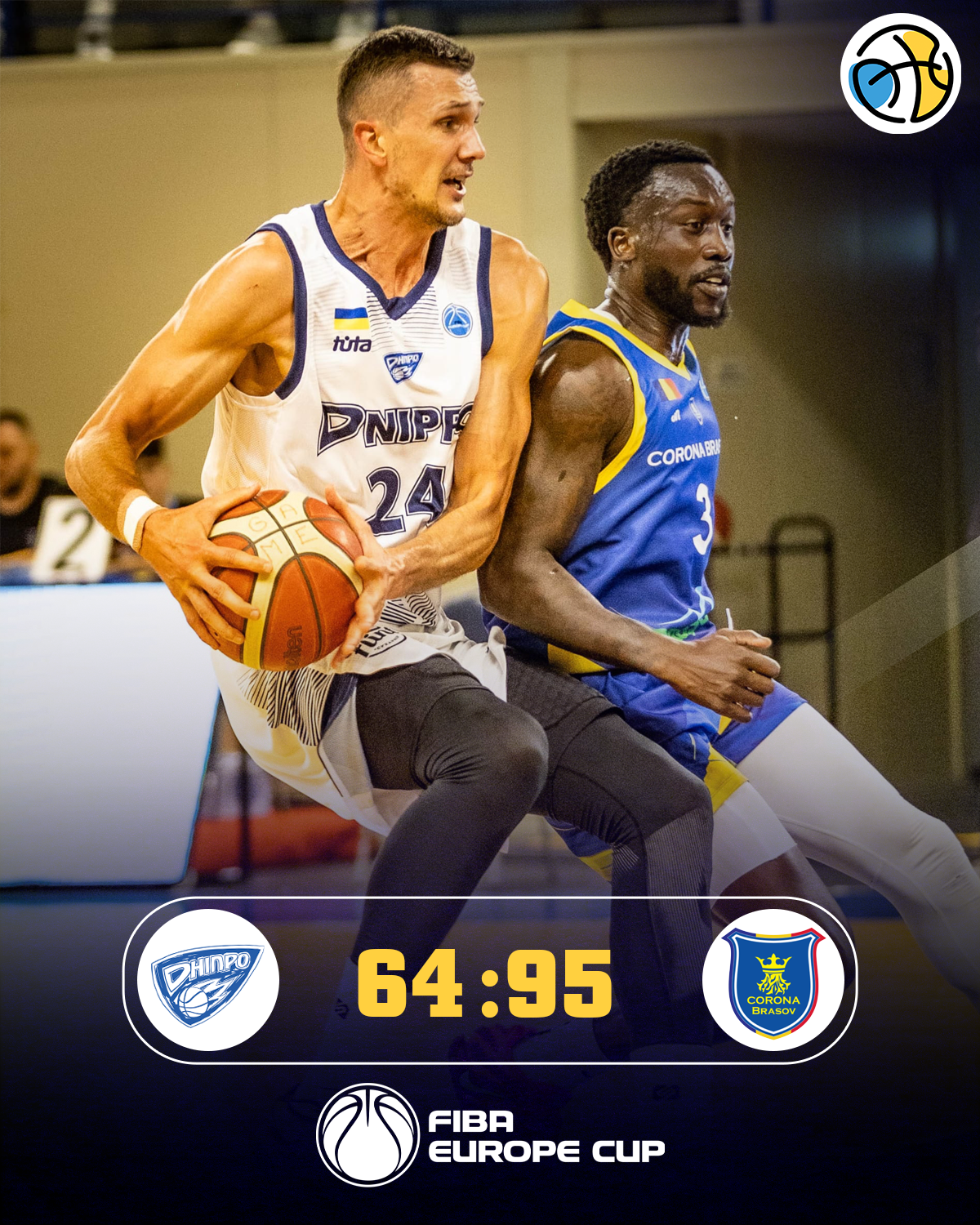 Чемпіон України Дніпро програв другий матч кваліфікації Кубка Європи ФІБА, поступившись румунському клубу Корона Брашов із рахунком 64:95.