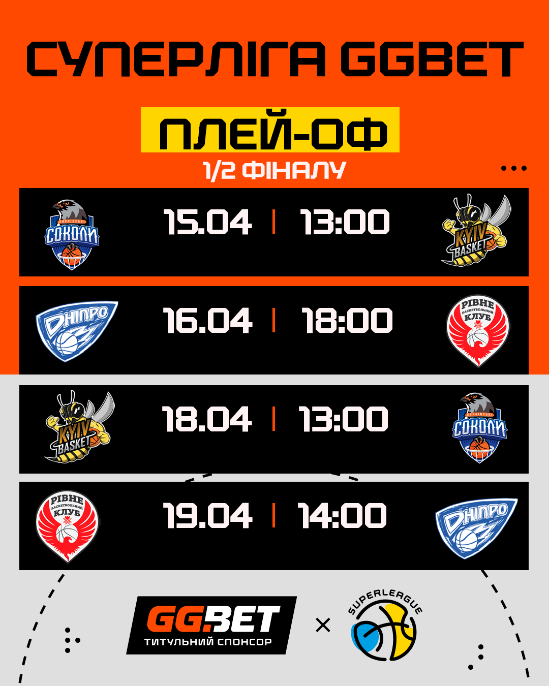 Завершився перший раунд плейоф Суперліги GGBET, за підсумком якого визначились дві півфінальних пари — Дніпро зіграє проти Рівного, а Харківські Соколи протистоятимуть Київ-Баскету.