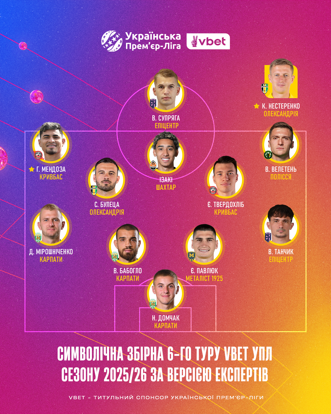 Українська Прем’єр-Ліга продовжує відзначати героїв сезону 2025/26 і склала символічну збірну 6-го туру Чемпіонату УПЛ, а також назвала найкращого гравця та найкращого тренера 6-го туру. Традиційно це було зроблено разом з ведучими, експертами, коментаторами УПЛ ТБ та представниками провідних спортивних ЗМІ України. Цього разу їх було 36.