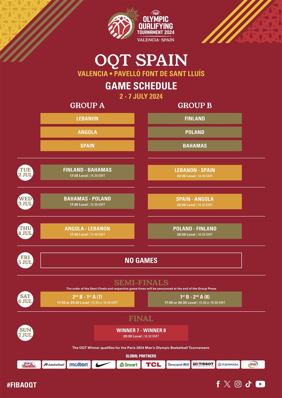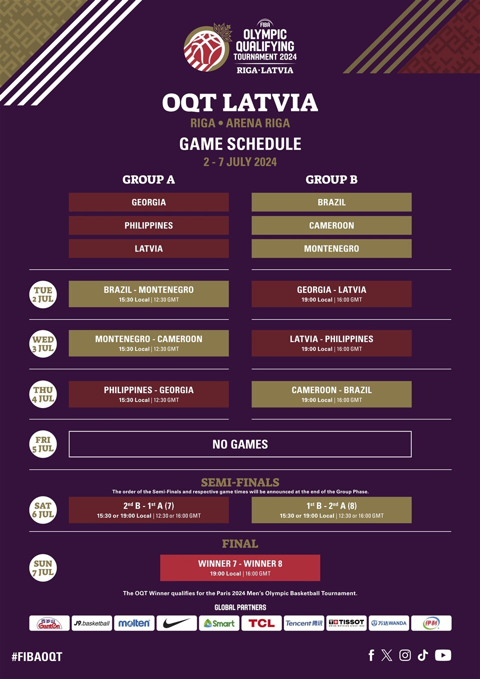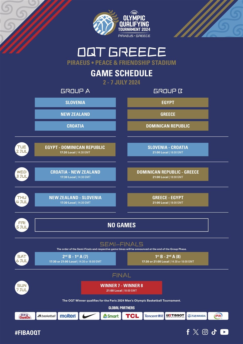 Оголошено розклад ігор липневих Олімпійських кваліфікаційних турнірів FIBA серед чоловічих збірних у Греції, Латвії, Пуерто-Ріко та Іспанії.