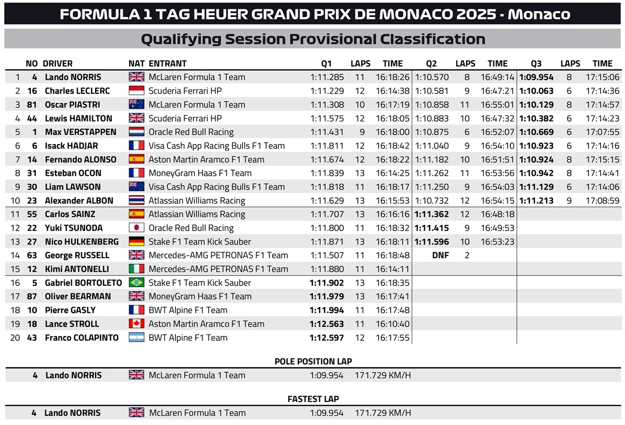 DOC 34 – Provisional Qualifying Classification https://t.co/nVLPv627jK #MonacoGP #F1 #FIA pic.twitter.com/41wmV1TW3J