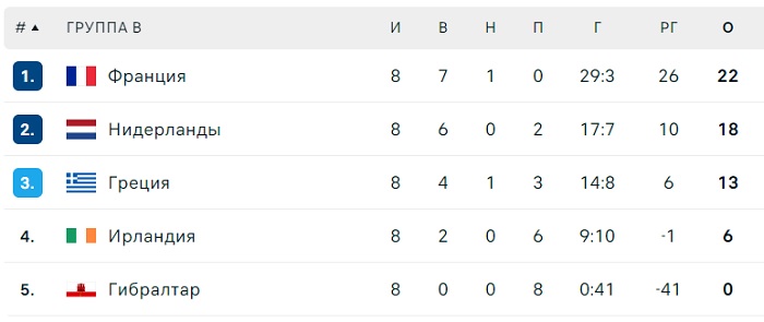В результате, игра завершилась результативною ничьей – 2:2. Сборная Франции отправится на чемпионат Европы-2024, а сборной Греции предстоит сыграть в плей-офф раунде Лиги наций.