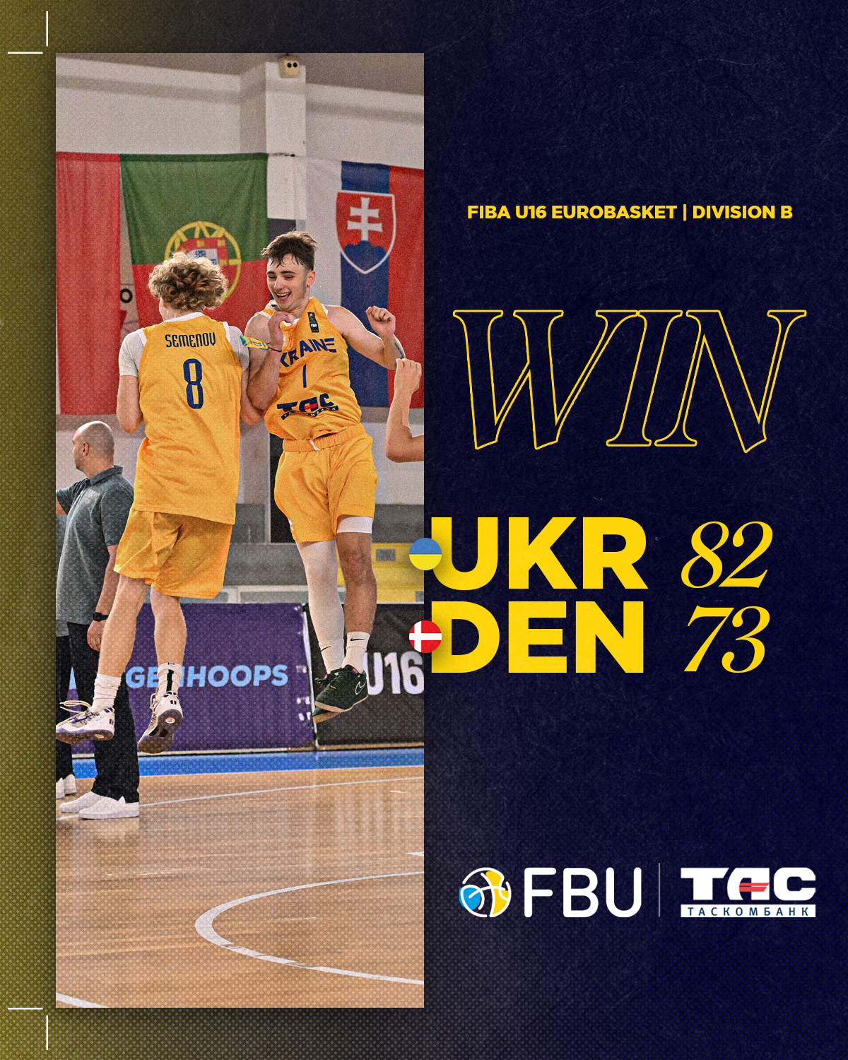 Чоловіча кадетська збірна України U-16 здобула перемогу над Данією з рахунком 82:73 в стартовому для себе матчі чемпіонату Європи у Дивізіоні В.