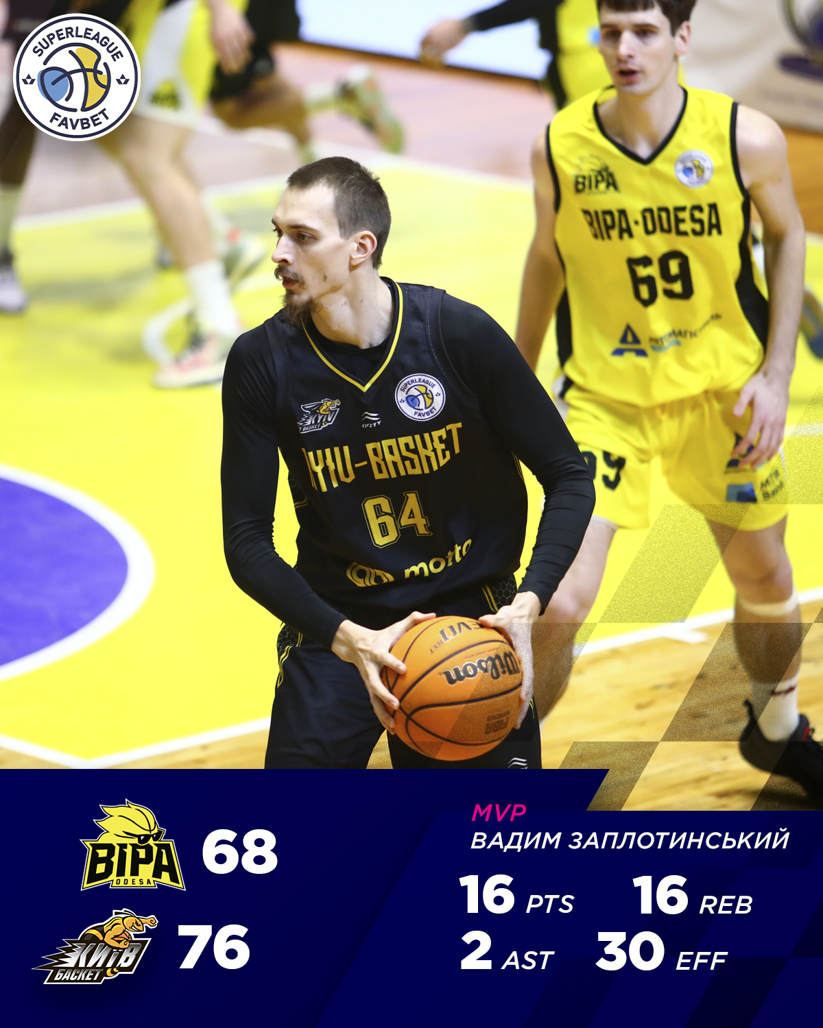 БІПА — Київ-Баскет 68:76 (21:17, 9:21, 13:17, 25:21) / статистика