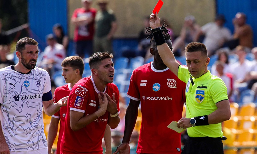 У першій частині сезону 2025/26 VBET Української Прем’єр-Ліги зафіксовано 15 червоних карток для гравців 9 клубів.