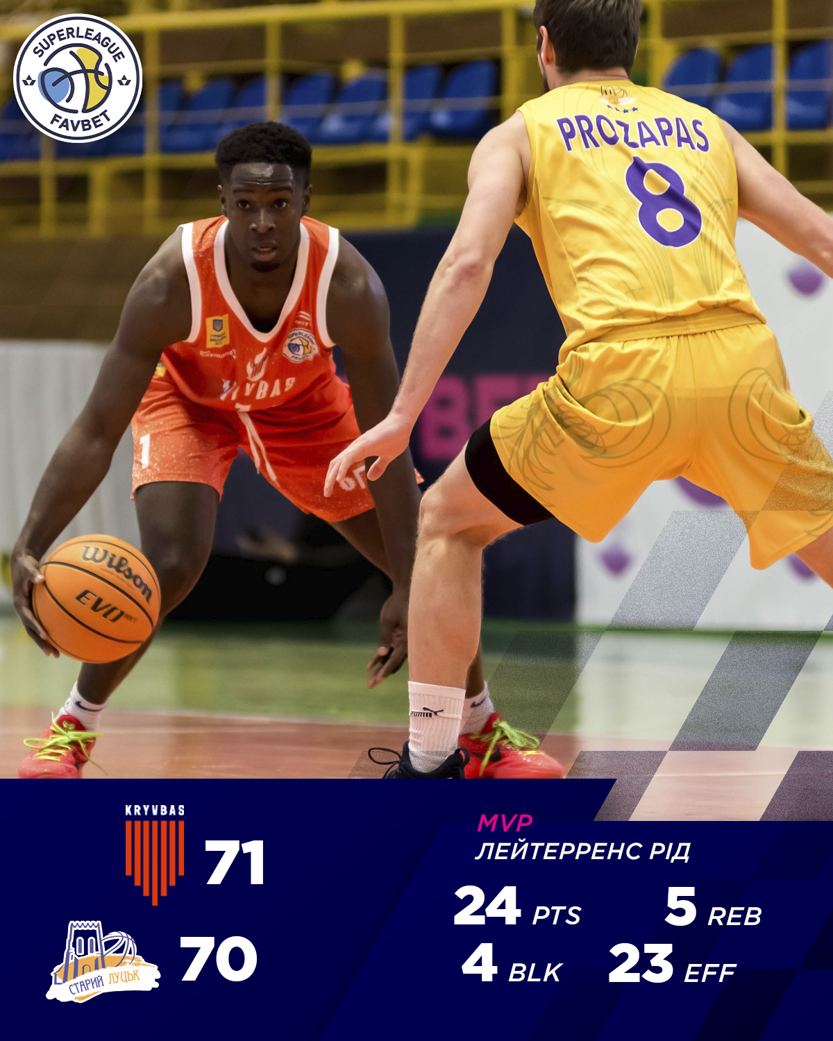 Найрезультативнішим в матчі став легіонер Кривбасу Лейтерренс Рід, який набрав 24 очка.