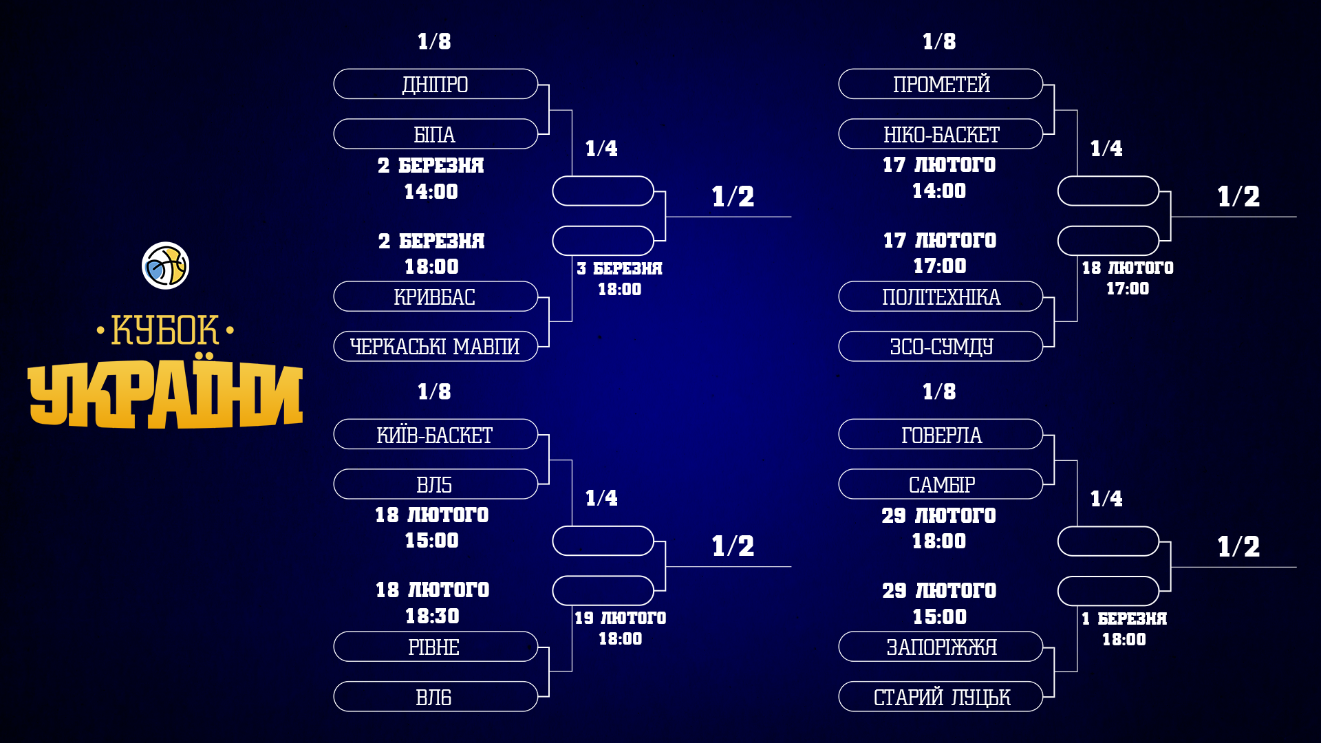 Матчі першого етапу Кубку України пройдуть з 17 лютого по 3 березня. Кубкове вікно було розширене за запитом головного тренера Національної збірної України — Віталія Степановського. Українська команда розпочинає свій збір раніше міжнародного вікна на два дні, відповідно до команди мають встигнути приєднатися форвард "Дніпра" — Володимир Конєв та наставник "Черкаських Мавп" — Артем Сліпенчук. До вашої уваги розклад матчів 1/8 та 1/4 фіналу турніру.