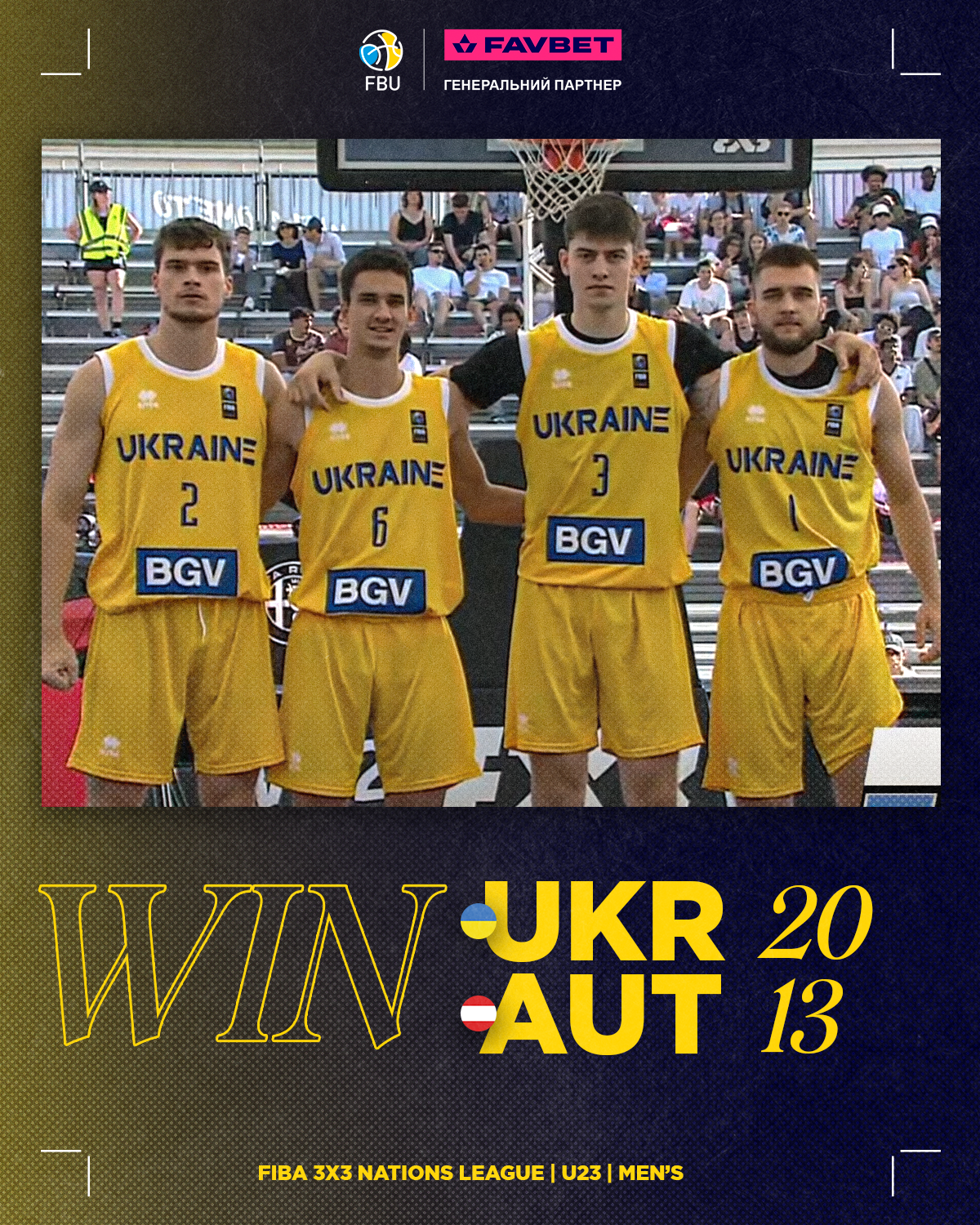 Чоловіча збірна України U-23 здобула перемогу на першому стопі Ліги націй 3х3, який проходить у Відні, Австрія.