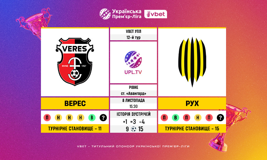 Безнічийна серія Вереса з Рухом триває в УПЛ 4 гри: перемога та 3 поразки.