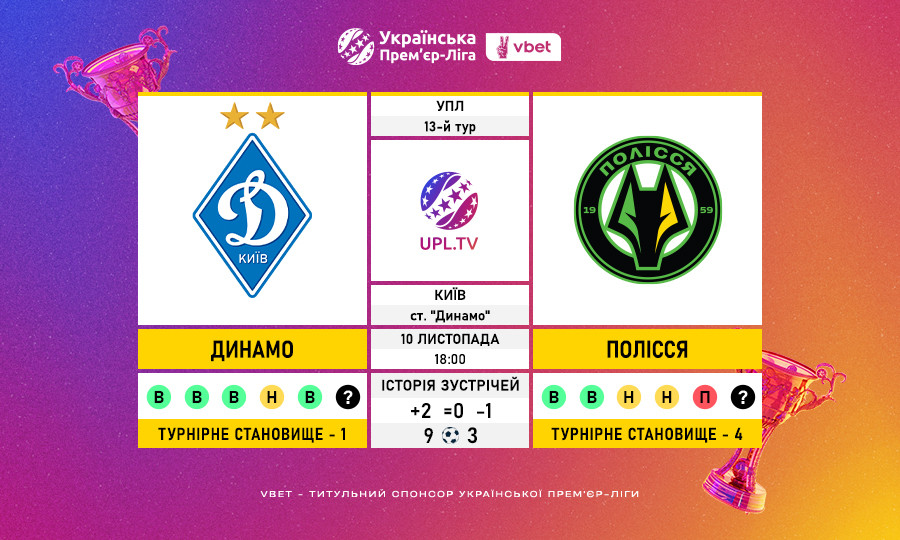 На полі Динамо — 1 матч: +1=0-0 м’ячі 3—0