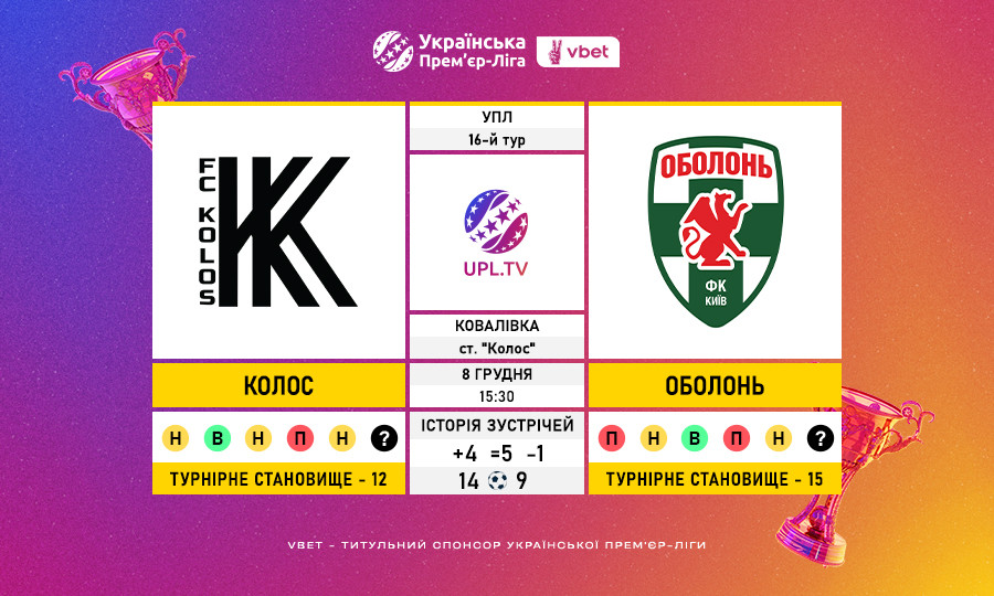 На полі Колоса — 5 матчів: +3=2-0 м’ячі 6—2