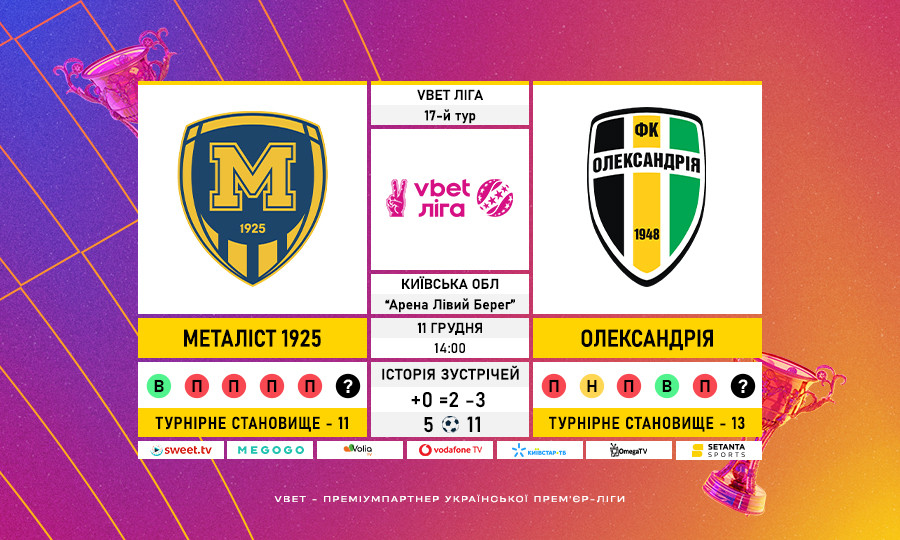 Матч 17-го туру VBET Ліги «Металіст 1925» — «Олександрія»: статистичне прев’ю