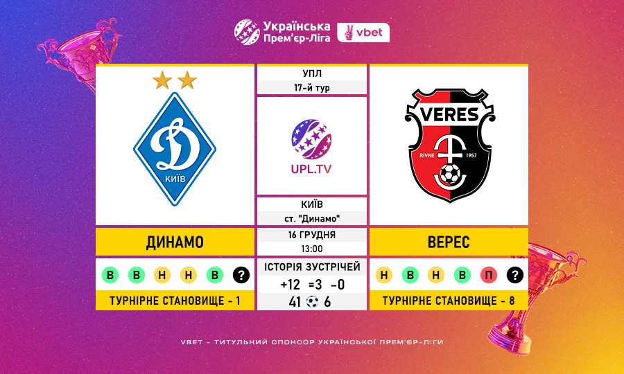 Серія домашніх великих перемог Динамо над Вересом триває в УПЛ 4 гри.