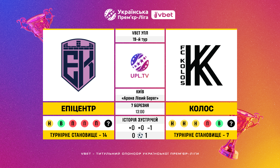 Епіцентр у попередніх 3-х матчах очок не здобував і голів не забивав.