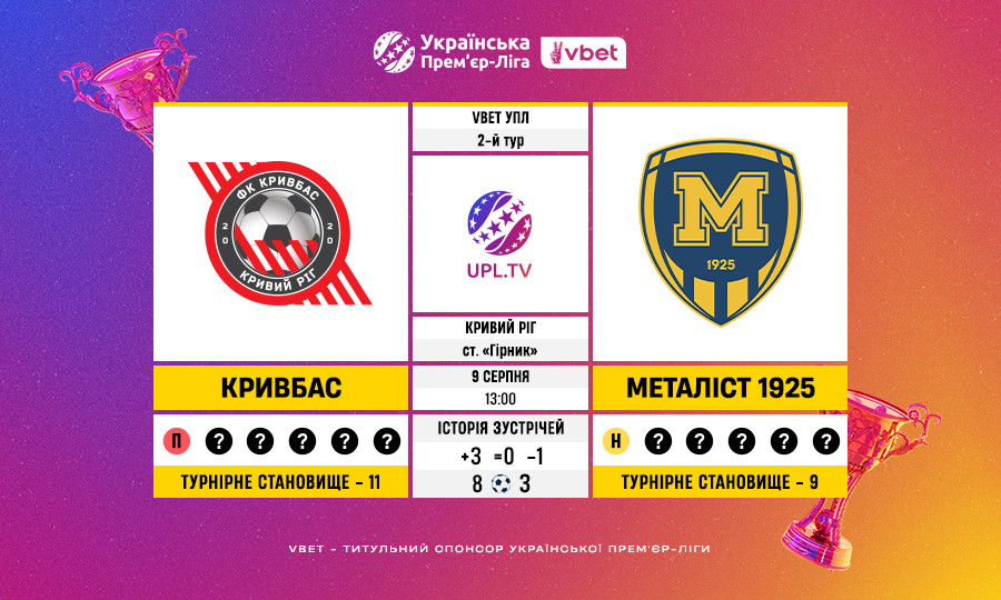 Матч 2-го туру VBET Української Прем’єр-Ліги «Кривбас» — «Металіст 1925»: статистичне прев’ю