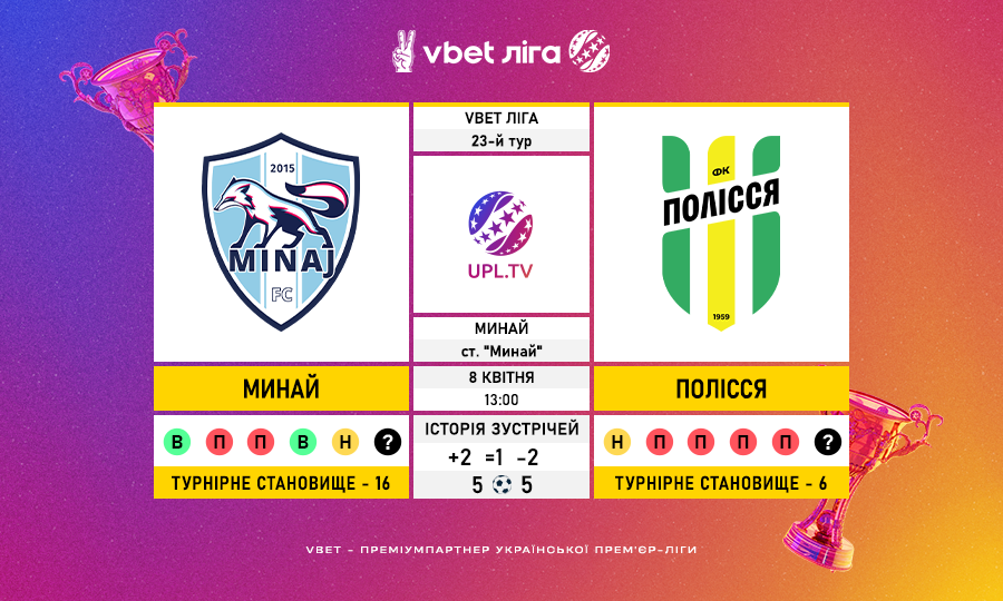 На полі Миная – 1 матч: +0=1-0 м’ячі 1-1