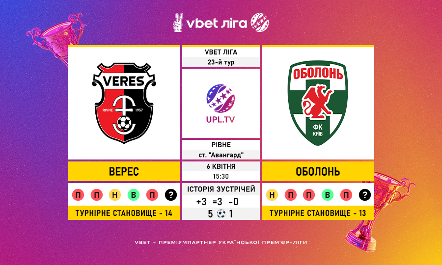 ОболоньVBET ЛігаВерес