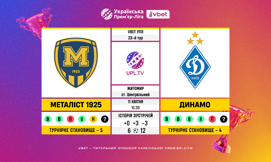 Матч 23-го туру VBET Української Прем’єр-Ліги «Металіст 1925» — «Динамо»: статистичне прев’ю