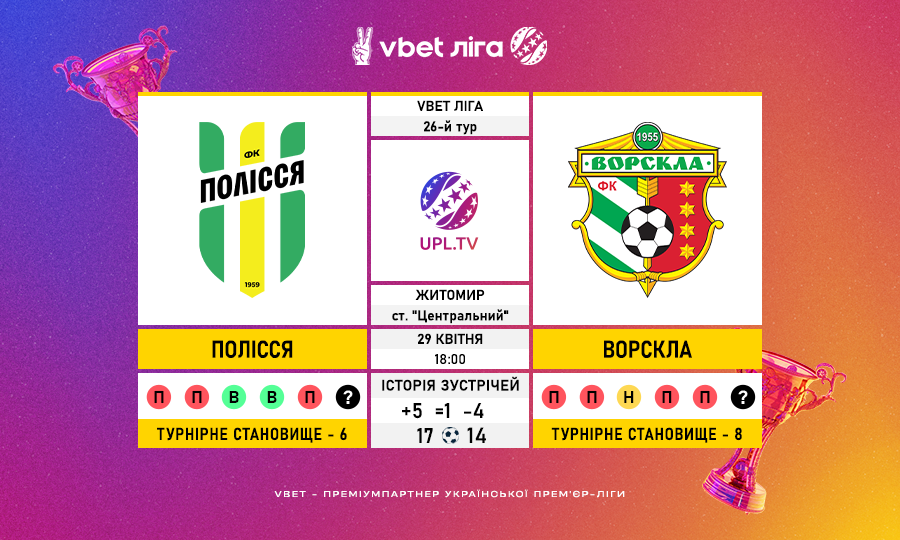 В УПЛ зіграно 1 матч: +1=0-0 м’ячі 3-0