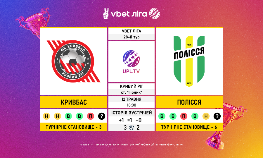 Матч 28-го туру VBET Ліги «Кривбас» — «Полісся»: статистичне прев’ю