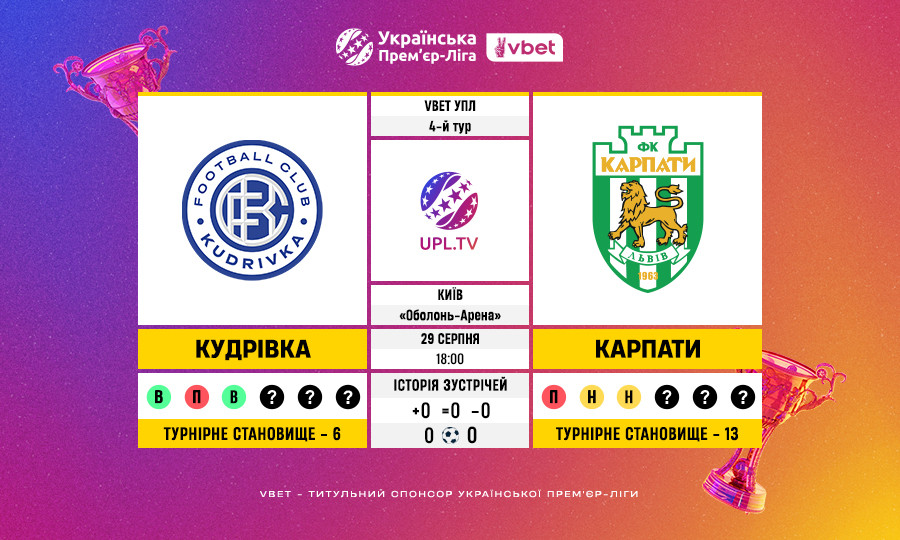 Матч 4-го туру VBET Української Прем’єр-Ліги «Кудрівка» — «Карпати»: статистичне прев’ю