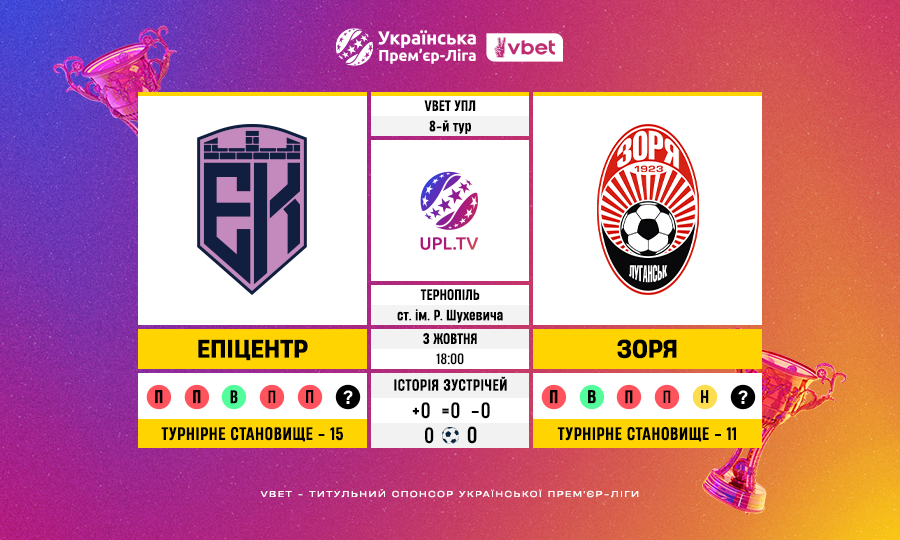 Епіцентр в Чемпіонаті на своєму полі очок ще не здобував — 3 поразки.