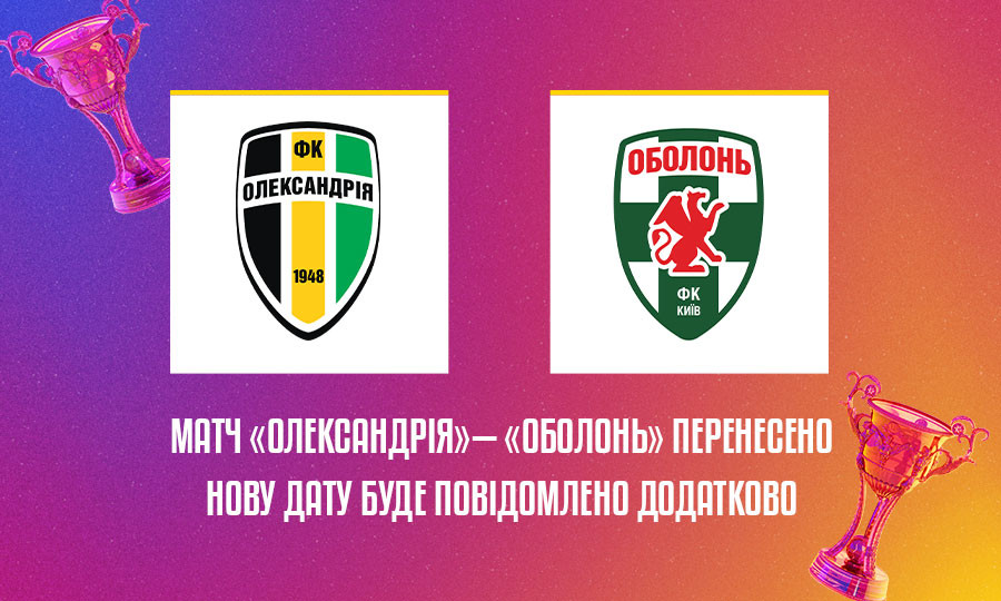 ОФІЦІЙНО: Матч 15-го туру VBET Ліги сезону 2023/24 «Олександрія» – «Оболонь», що мав відбутися сьогодні, 26.11 о 15:00, перенесено через складні погодні умови у Олександрії та неможливість проведення матчу.