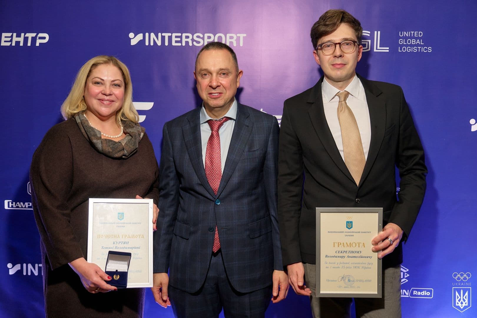 Окремими державними нагородами за значний внесок у розвиток олімпійського руху та українського спорту були відзначені представники спортивної спільноти. Указом Президента України Володимира Зеленського — медаллю «За працю і звитягу» – було нагороджено Андрія Власкова — члена НОК України, президента Федерації плавання України. Почесною Грамотою Верховної Ради України «За заслуги перед Українським народом» відзначено Ніну Лемеш — члена НОК України, голову Відділення НОК України в Чернігівській області. Почесною Грамотою Кабінету Міністрів України за вагомий особистий внесок у забезпечення розвитку фізичної культури і спорту, сумлінну працю та високий професіоналізм нагороджено Наталію Власову — члена НОК України, голову Запорізького обласного відділення НОК України. Нагороди вручив голова Комітету Верховної Ради України з питань молоді і спорту Андрій Кожем’якін.