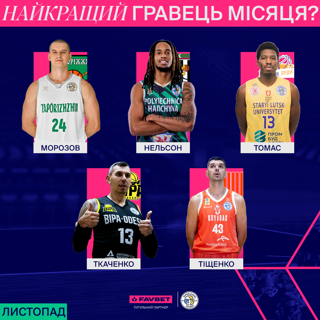На офіційній сторінці Федерації баскетболу України в Telegram стартувало традиційне голосування за найкращого гравця регулярного чемпіонату Суперліги Favbet за підсумком листопада.