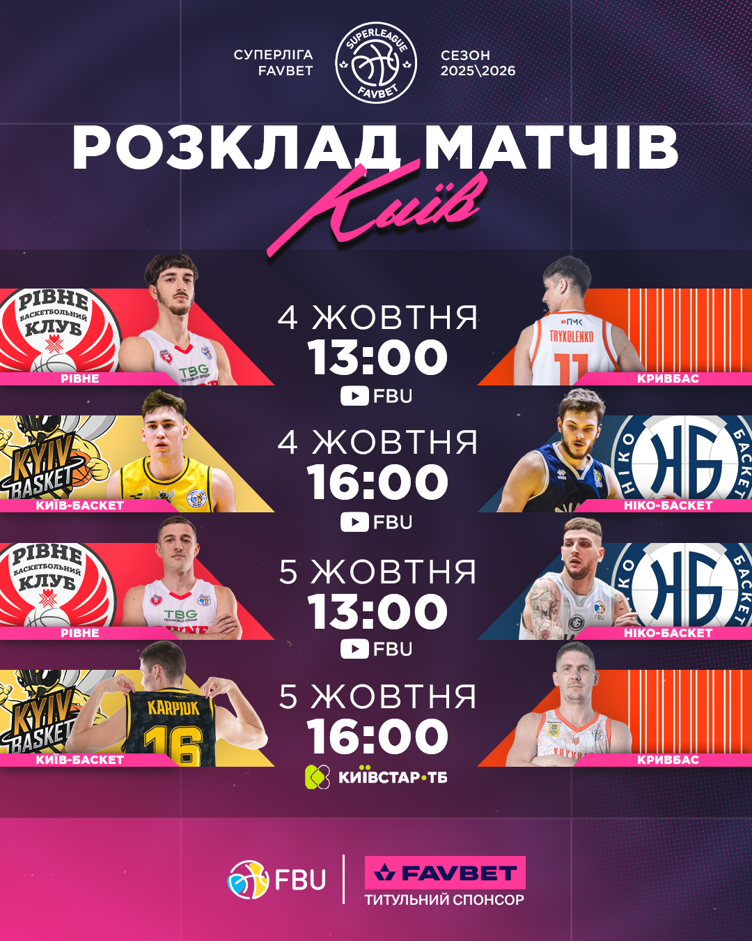 16:00 Київ-Баскет — Кривбас (Київстар ТБ)