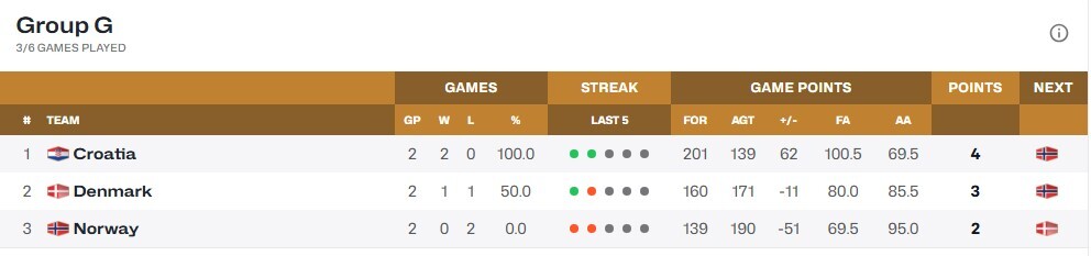 Хорватія — Данія 100:71 (24:14, 32:29, 21:16, 23:12)