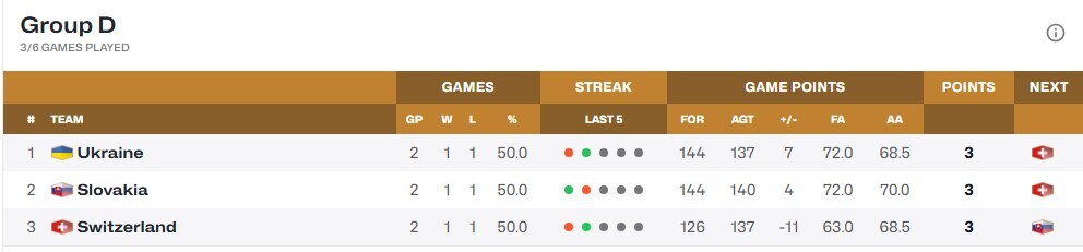 Після першого кола у трьох збірних нашої групи тепер по одній перемозі і одній поразці, але за кращою різницею на перше місце вийшли українці.