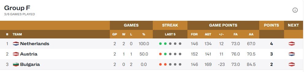 Болгарія, яка при жеребкуванні була в першому кошику, програла Нідерландам і в групі F знаходиться на останньому місці з двома поразками.