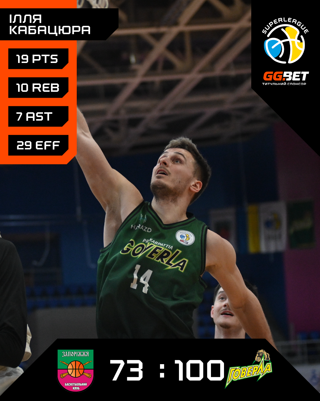 Говерла: Морозов 22, Рід 22 + 8 передач + 7 підбирань — 5 втрат, Кабацюра 19 + 10 підбирань + 7 передач, Марків 14, Кузнецов 3 — старт, Чугунов 8, Дмитренко 8 + 6 підбирань, Рудий 4, Дроздов 0