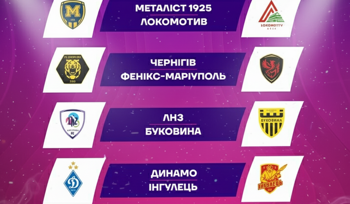 Команды разделили на 4 пары. Первой парой стали «Металлист 1925» и киевский «Локомотив». «Чернигов» сыграет против «Феникс-Мариуполь». «ЛНЗ» предстоит побороться с «Буковиной». Соперником ФК «Динамо» стал ФК «Ингулец».