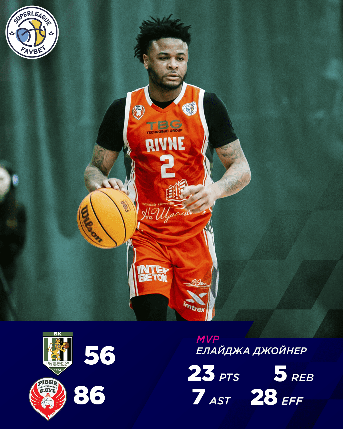 Політехніка-Галичина (Львів) — Рівне  56:86 (19:18, 17:19, 12:24, 8:25)