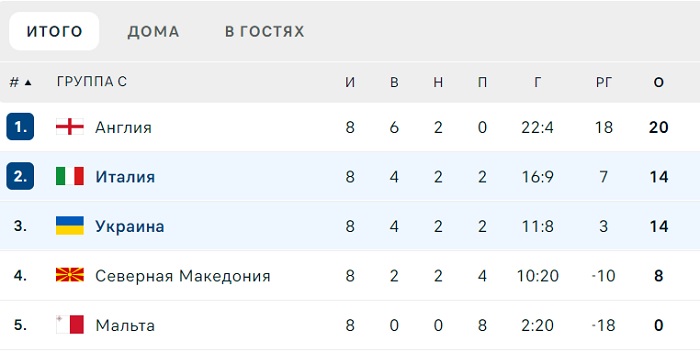 Да, украинская сборная в свои ворота не пропустила ни одного гола, как бы не старались итальянцы. Но и забить сопернику тоже не смогла – не помогли усилия ни Мудрика, ни Цыганкова, ни Довбика. Счет на табло так и остался 0:0, и обе сборные взяли в актив по 1 очку. Исходя из того, что до последнего матча у Украины и Италии было по 13 очков, теперь стало по 14 очков. Но у команды Спаллетти лучшая разница забитых/пропущенных мячей (169), в то время как у Украины (11/8). Да и у Италии было преимущество в очной встрече – первый матч завершился в ее пользу со счетом 2:1.