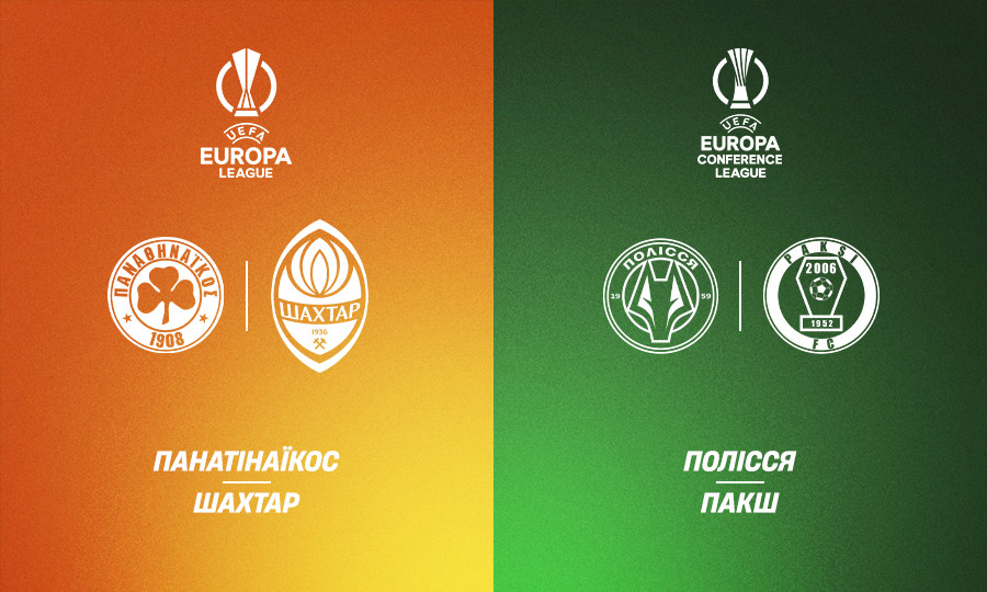 Сьогодні важливий день для двох клубів УПЛ — «Шахтаря» та «Полісся»: вони проведуть перші матчі третього раунду кваліфікації Ліги Європи та Ліги Конференцій відповідно. Гірники зіграють на полі грецького «Панатінаїкоса» в Афінах, житомиряни в словацькому Пряшеві прийматимуть угорський «Пакш». Матчі розпочинаються одночасно (21:00), трансляція з Афін — на УПЛ.ТБ, трансляція з Пряшева — на Київстар ТБ.