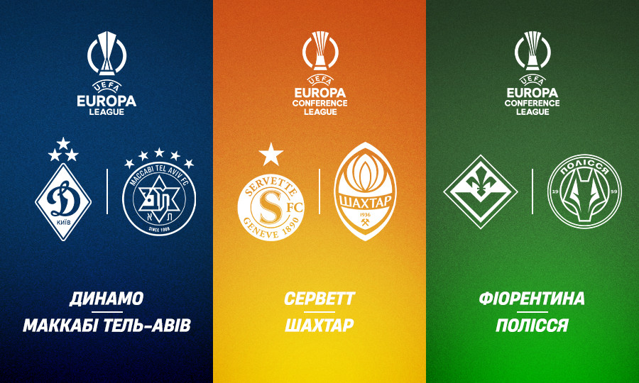 Першими на поле вийдуть «Динамо» та «Полісся». Початок їх матчів з ізраїльським «Маккабі» (Тель-Авів) та італійською «Фіорентиною» відповідно — 21:00 за київським часом. Трансляція з польського Любліна — на «2+2», із Флоренції — на «Київстар ТБ».