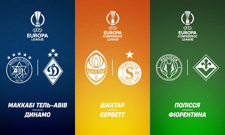Сьогодні три клуби УПЛ проведуть перші матчі заключного раунду кваліфікаційного раунду євросезону 2025/26: «Динамо» в Лізі Європи зіграє в гостях з «Маккабі» ТА (Ізраїль), «Полісся» та «Шахтар» в Лізі Конференцій прийматимуть «Фіорентину» (Італія) та «Серветт» (Швейцарія) відповідно.