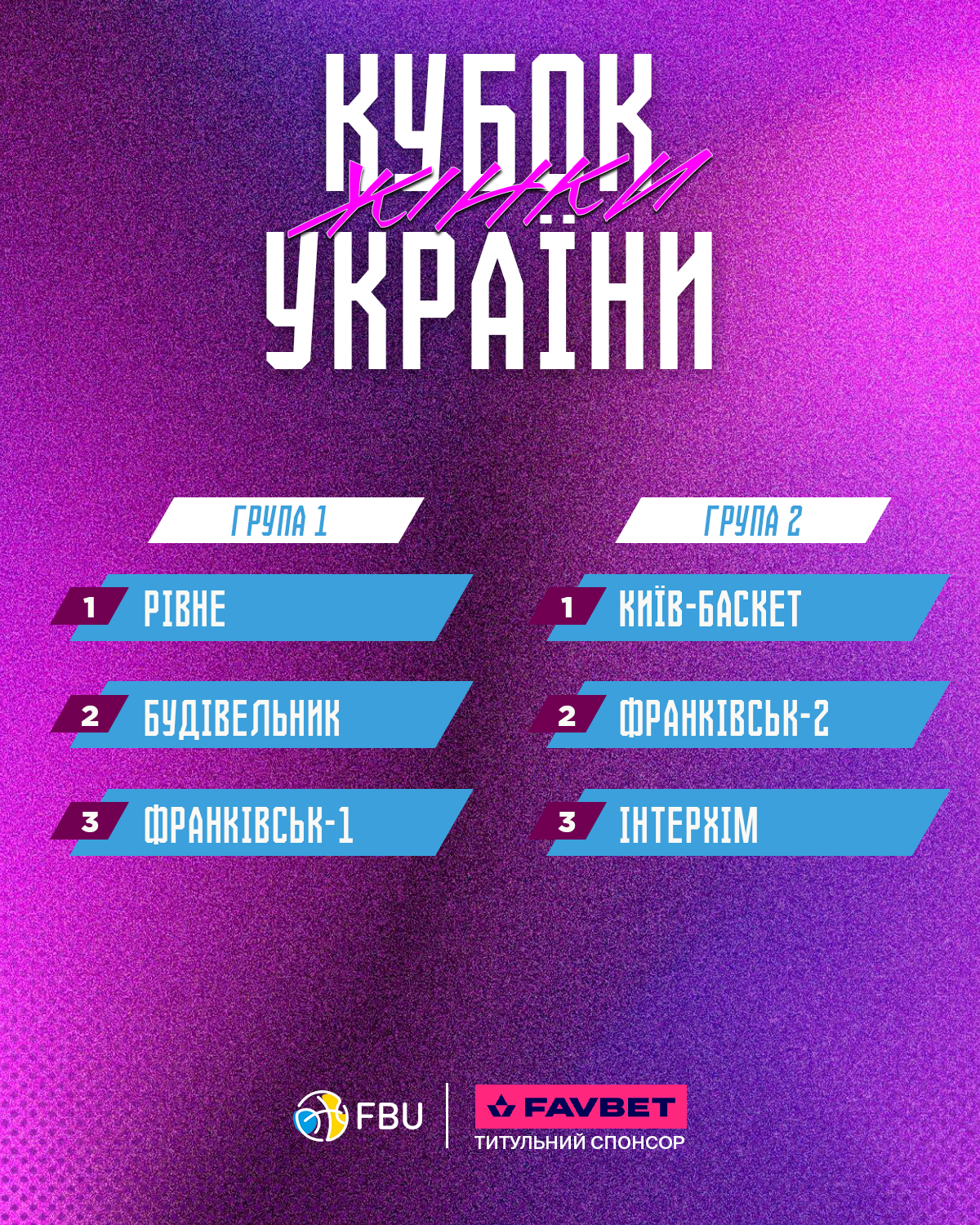 Рішенням Департаменту організації та проведення змагань ФБУ господарями першого етапу стануть Київ-Баскет та Рівне-ОШВСМ-ОСДЮСШОР, які потрапили до різних груп. Сліпим жеребкуванням команди були розподілені на дві групи:
