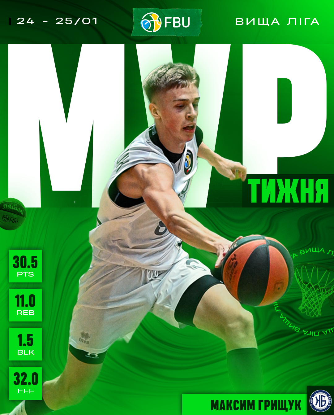 MVP сьомого ігрового тижня визнано 19-річного форварда Ніко-Баскета-2 Максима Грищука, який перед першим матчем з ДіДіБао відіграв 20 хвилин за Ніко-Баскет проти Київ-Баскету у Суперлізі, а потім в той же день вийшов проти ДіДіБао і за 28 хвилин набрав 23 очка і зібрав 9 підбирань.