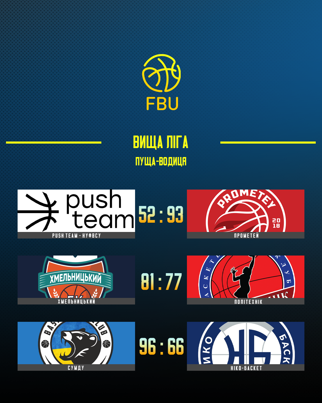 В іншому матчі в Пущі-Водиці двох команд з топ-5 теж не вийшло боротьби – лідер чемпіонату Прометей переграв Push Team-НУФВСУ 93:52.