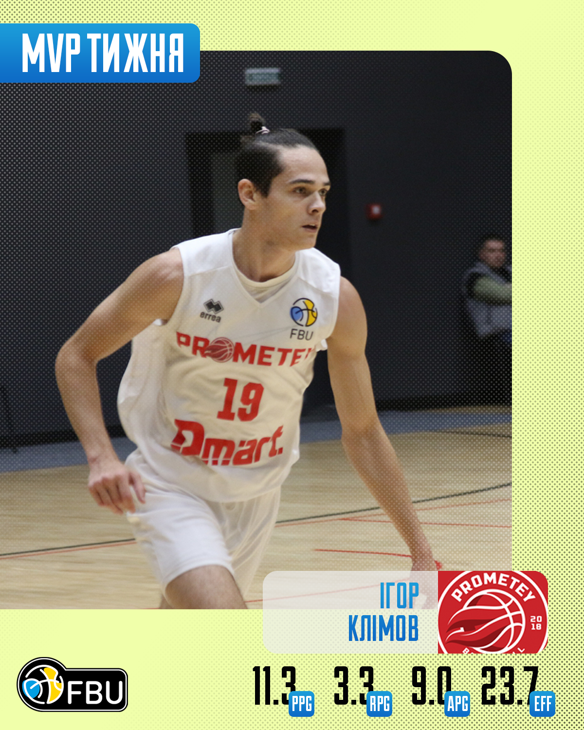 Ігор Клімов (Прометей) – 11.3 очка, 3.3 підбирання, 9.0 передач, 3.0 перехоплення. РЕ 23,7