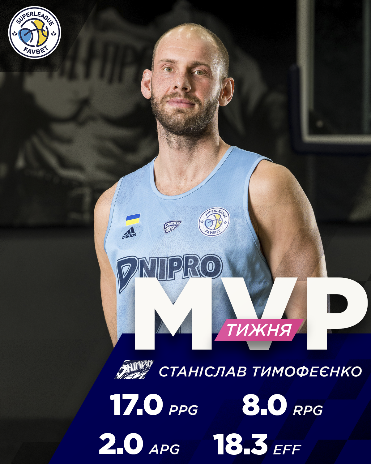 MVP ігрового тижня визнано капітана Дніпра Станіслава Тимофеєнка. Бігмен лідерів Суперліги допоміг своїй команді здобути чергові три перемоги: над Старим Луцьком (14 очок, 8 підбирань, 2 передачі), Київ-Баскетом (16 очок, 9 підбирань, 4 передачі) та Черкаськими Мавпами (21 очко, 7 підбирань). Варто видзначити і фантастичний вклад Максима Нікітіна, який після нагороди кращого гравця місяця виглядам одним із найкращих і в цьому баблі.